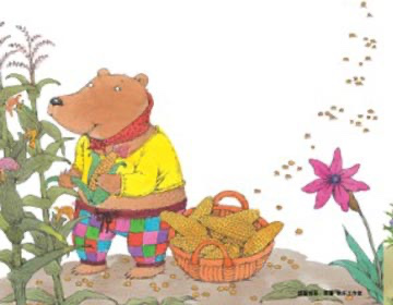 狗熊先生掰玉米的时候,不小心掉下了一些玉米粒儿。