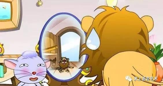 狮子走进屋子,在镜子前面一站,正好鼓起来的一面朝着他。他往镜子里一瞧,看见自己又矮又小,像只小老鼠。