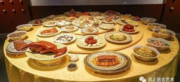 我请您吃:蒸羊羔儿、蒸熊掌、蒸鹿尾儿、烧花鸭、烧雏鸡、烧子鹅、炉猪、炉鸭、酱鸡、腊肉、松花、小肚儿、酱肉、香肠、什锦酥盘儿、熏鸡白脸儿、清蒸八宝猪、江米酿鸭子、罐儿野鸡、罐儿鹌鹑、卤什件儿、卤子鹅、山鸡、兔脯、莱蟒、银鱼、清蒸哈什蚂、烩鸭腰儿、烩鸭条儿、清拌腰丝儿、黄心管儿、炯白鳝、炯黄鳝、豆鼓鲍鱼、锅烧鲤鱼、烀烂甲鱼、抓炒鲤鱼、抓炒对虾、软炸里脊、软炸鸡、什锦套肠儿、卤煮寒鸦儿、麻辣油卷儿、熘鲜蘑、熘鱼脯、熘鱼肚儿、熘鱼片儿、醋熘肉片儿、熘三鲜儿、熘鸽子蛋、熘白蘑、熘什件儿、炒银丝儿、熘刀鱼、清蒸火腿、炒白虾、炝青蛤、炒面鱼、炝竹笋、芙蓉燕菜、炒虾仁儿。